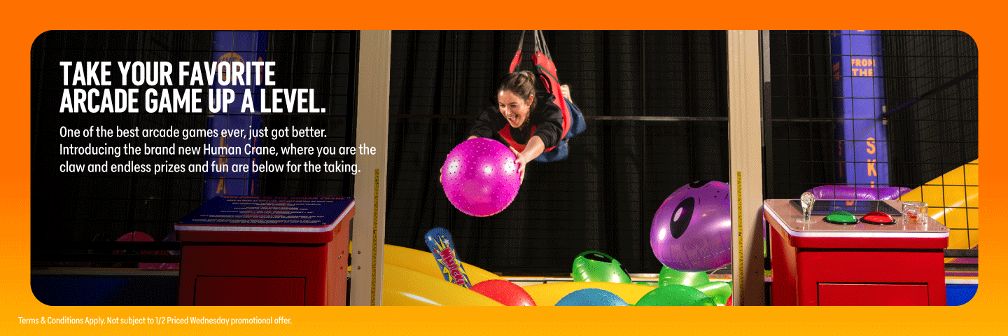 *Human Crane: May not be available in all locations. Hours of operation may vary from store hours and by location. Human Crane is not subject to 1/2 Priced Wednesday promotional offers.