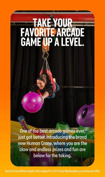 One of your favorite arcade games just got a makeover. Try the new Human Crane, at Dave & Buster’s, where you strap into a harness, soar, become the claw, and raise the bar for fun. Just like the crane game you know, drop down to grab prizes and have a little competition over who can score the best prize. Download the Dave & Buster’s Rewards app to discover all the new games and for savings on food, drinks and more.
