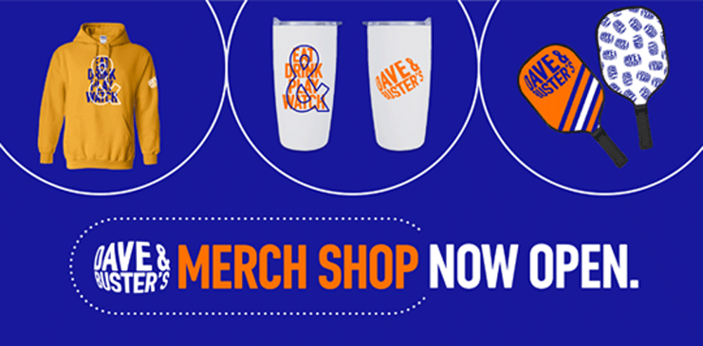 *DAVE & BUSTER'S MERCH: Any merchandise products provided on any third party website(s) by Dave & Buster’s, Inc., its parents, subsidiaries, affiliates, agents, representatives, employees, successors and assigns (collectively, “D&B”) are provided on an “as-is” and “as-available” basis. D&B makes no warranties or representations, express or implied, regarding the safety, reliability, durability or performance of any of the products offered on any suchwebsite(s). D&B is not liable for any damages, including direct, indirect, consequential or punitive damages arising from the use of any of said products. Users are solely responsible for using products safely and according to instructions. D&B is not responsible for errors in product descriptions or for failures of products to match product descriptions on third party website(s).
